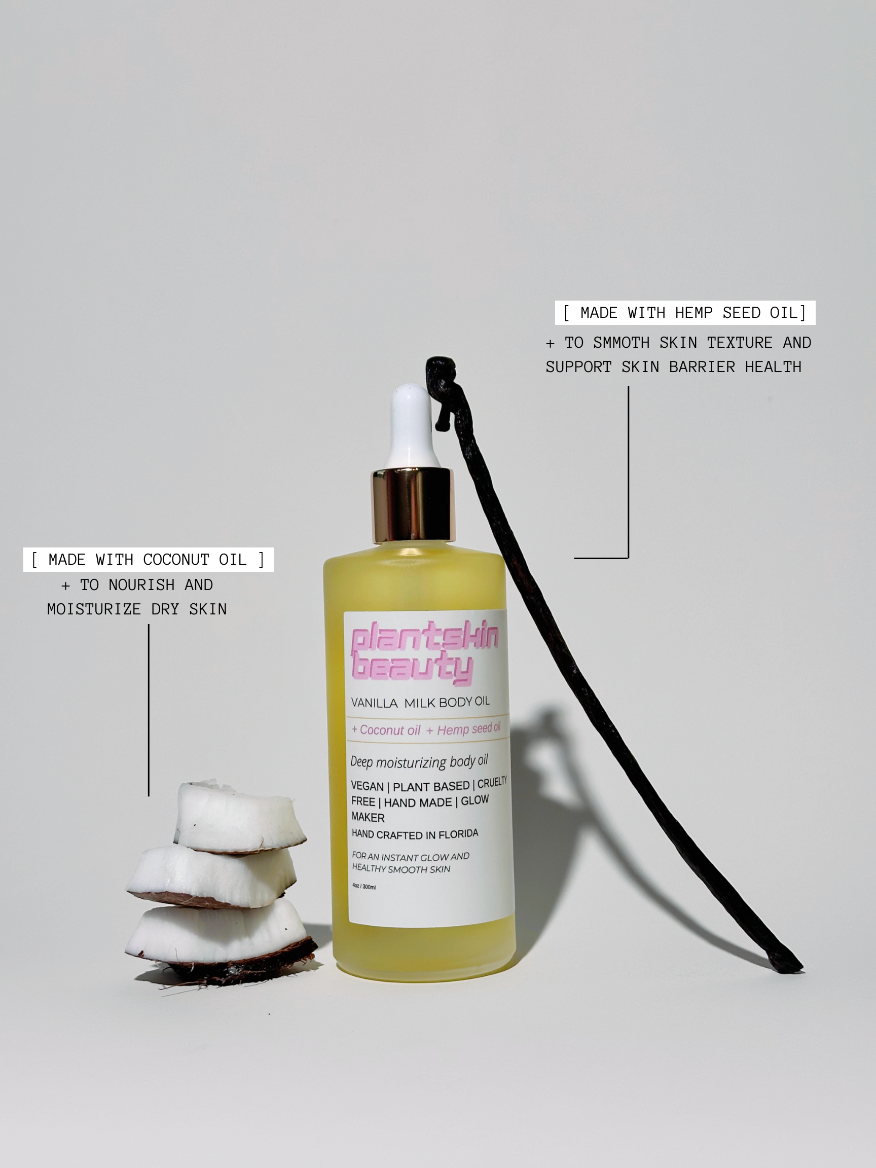 Wrap your skin in silky hydration with this fast-absorbing, dry body oil infused with vanilla milk bliss. Crafted with hemp seed oil, almond oil, and grape seed oil, it deeply nourishes without feeling greasy — leaving your skin smooth, radiant, and glowing.
