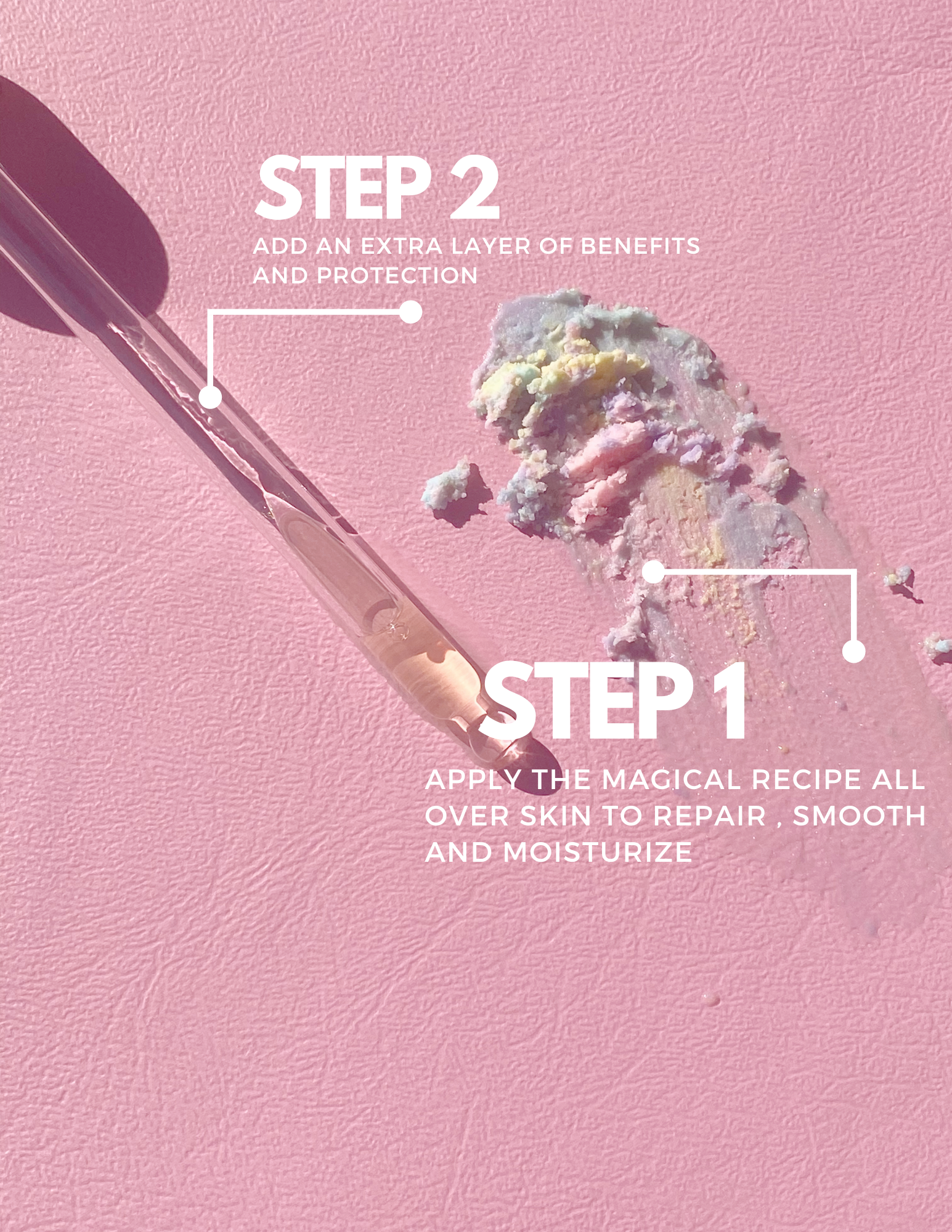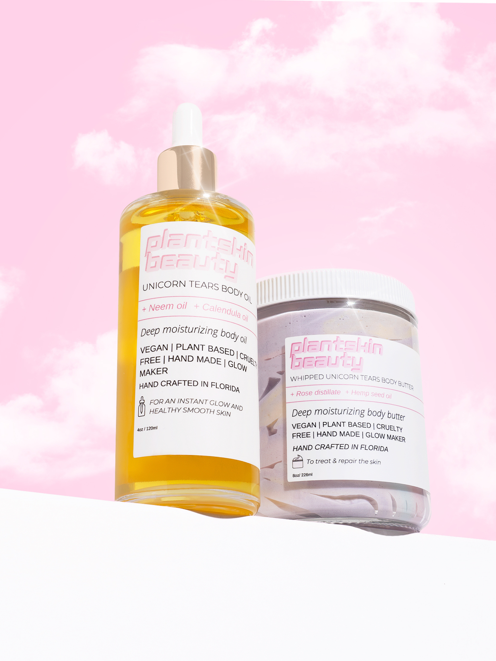 STEP 1. Apply desire amount of Whipped unicorn tear body butter daily onto damp skin for best results. STEP 2. Moisturize daily with unicorn tears body oil