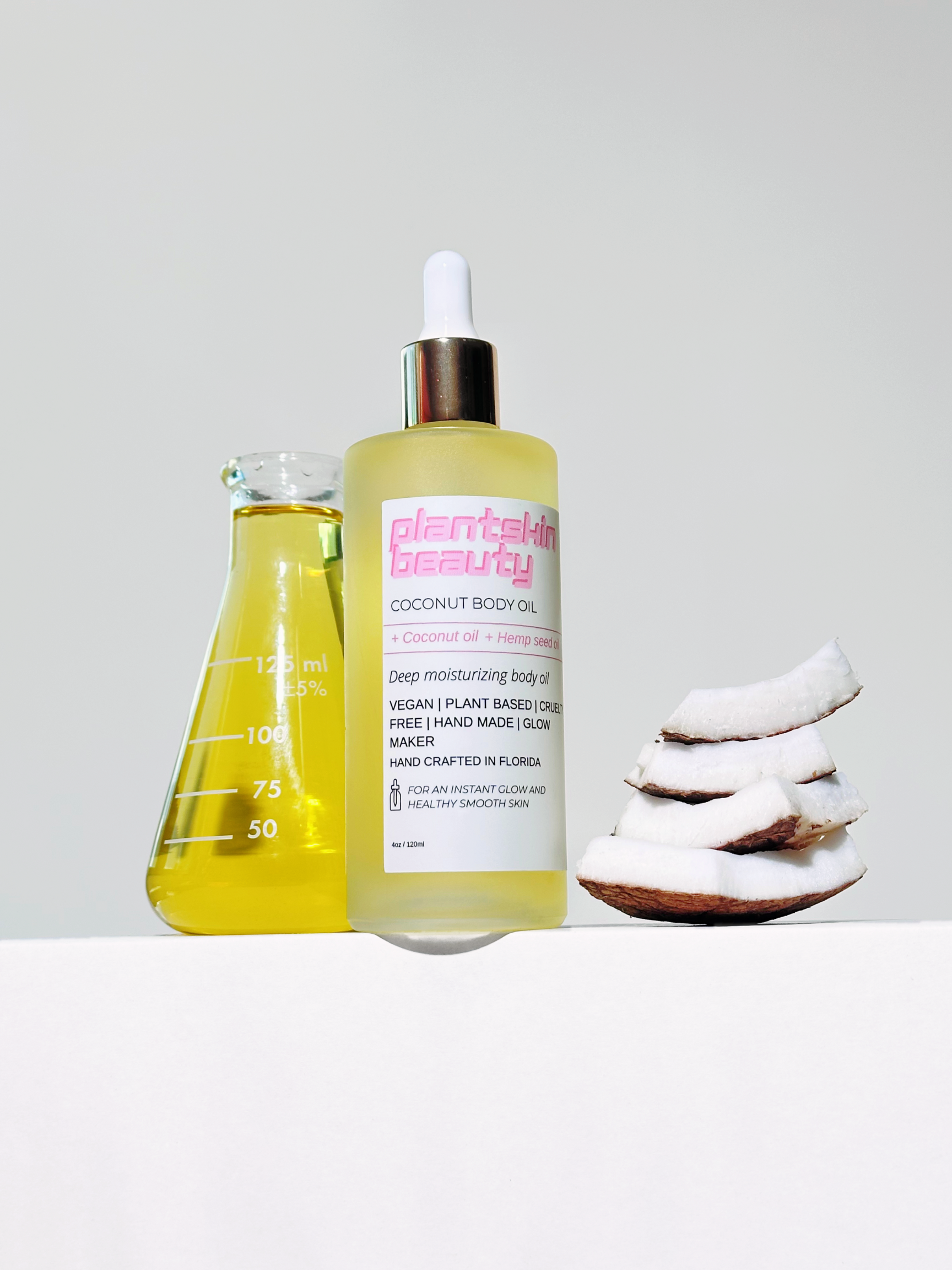 Escape to the tropics with every drop. Our Coconut Body Oil is a lightweight, fast-absorbing dry oil that leaves your skin soft, smooth, and radiant — never greasy. Enriched with hemp seed oil and coconut oil, it deeply nourishes while restoring balance to dry, tired skin. Perfect for everyday glow or post-sun pampering.