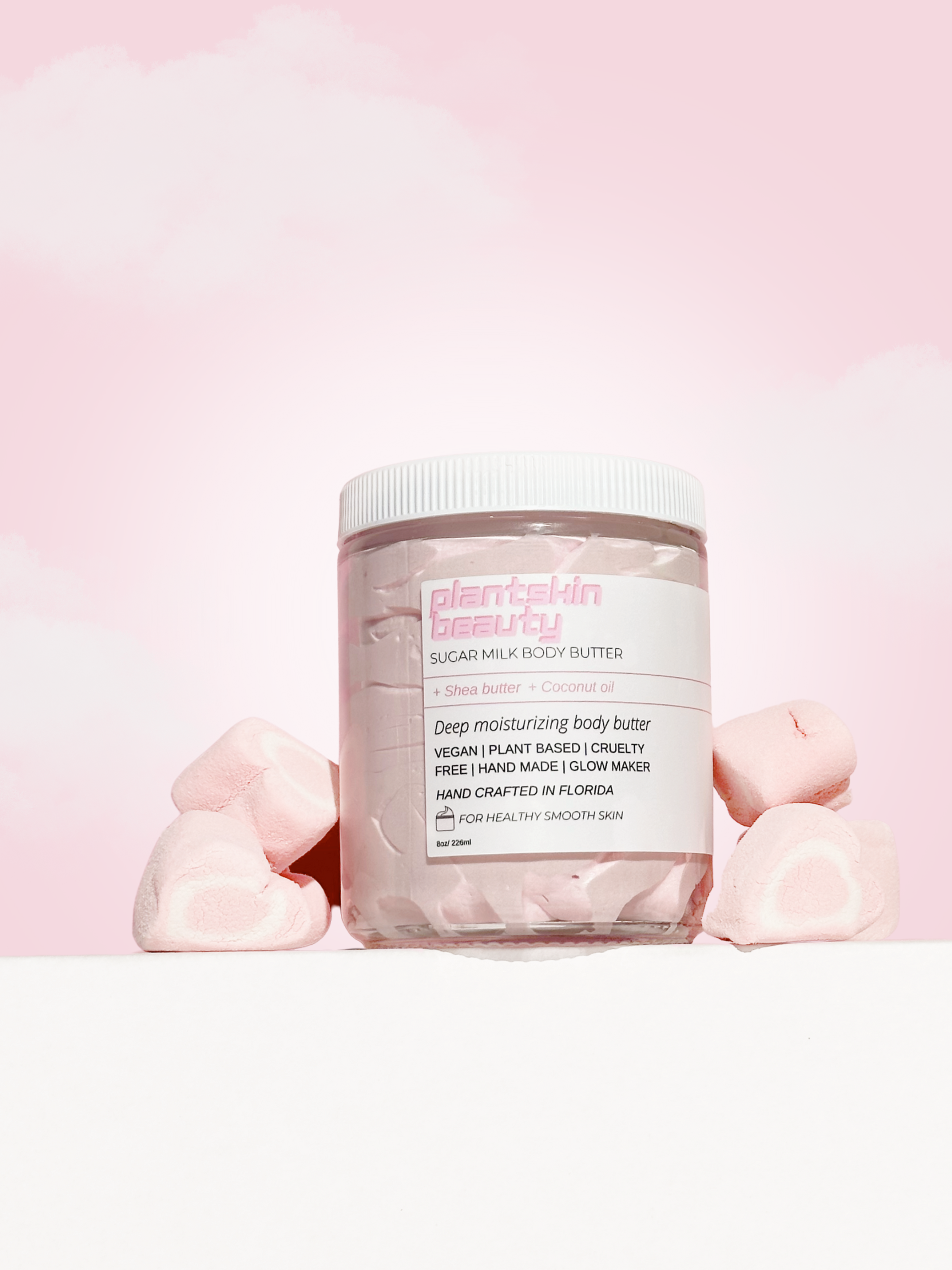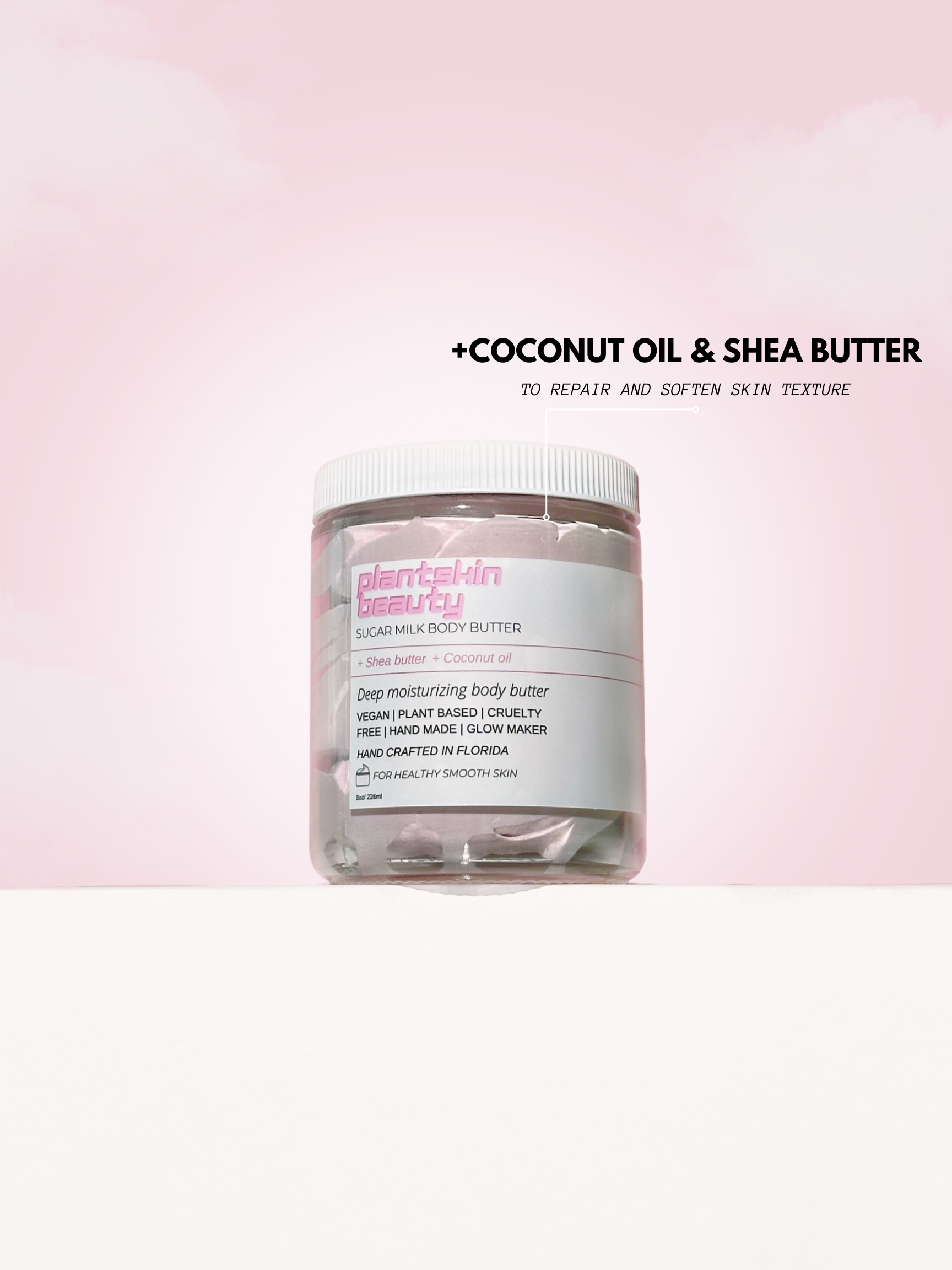Mango butter ,Helianthus Annuus (Sunflower) seed oil, Butyrospermum parkii (Shea) butter, Coconut oil , Arrowroot powder , Persea gratissima (Avocado) oil ,Prunus Armeniaca (Apricot kernel) oil ,Argania spinosa (Argan) oil , Non-toxic mica powder , Vitamin e oil , organic fragrance oil .